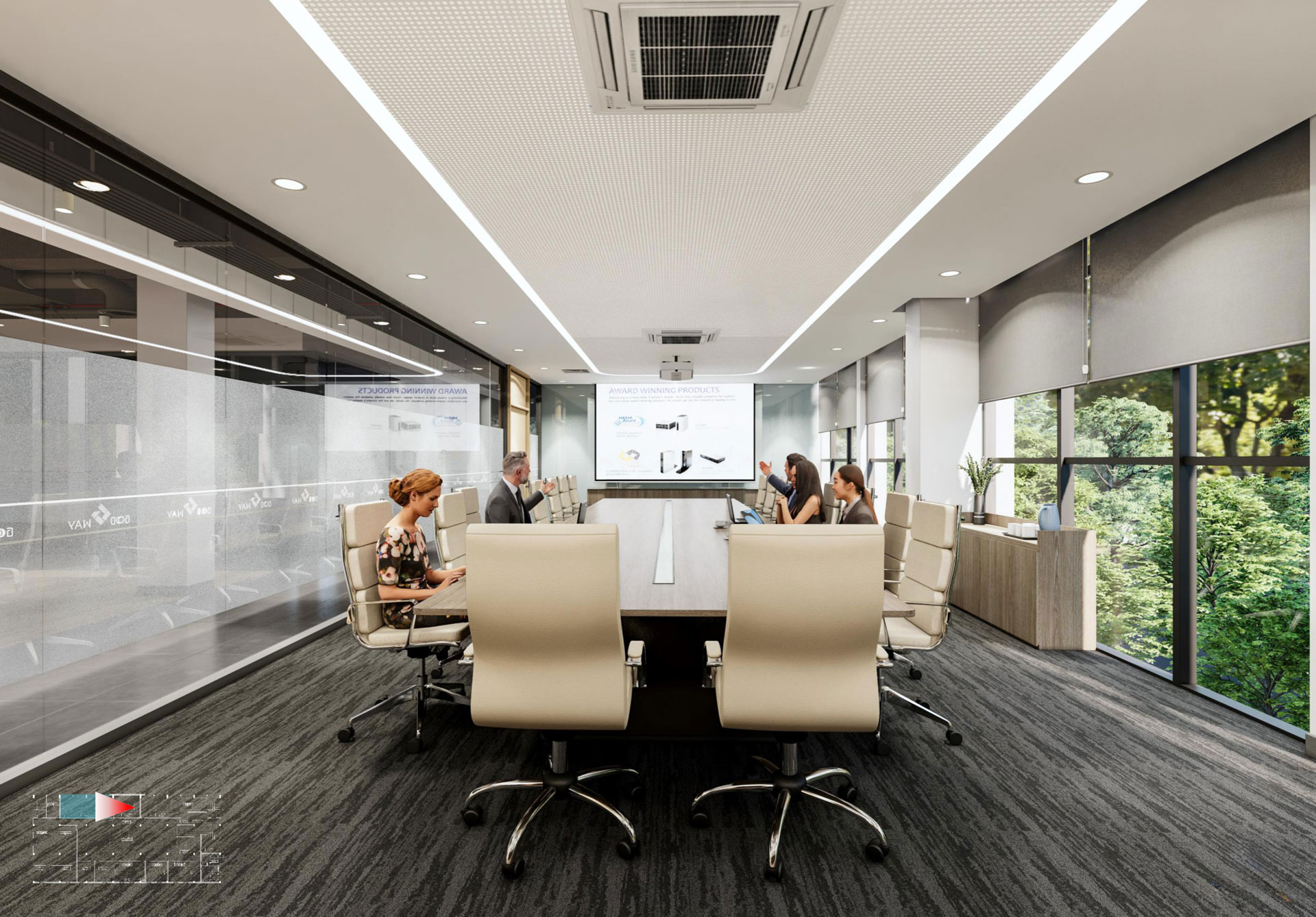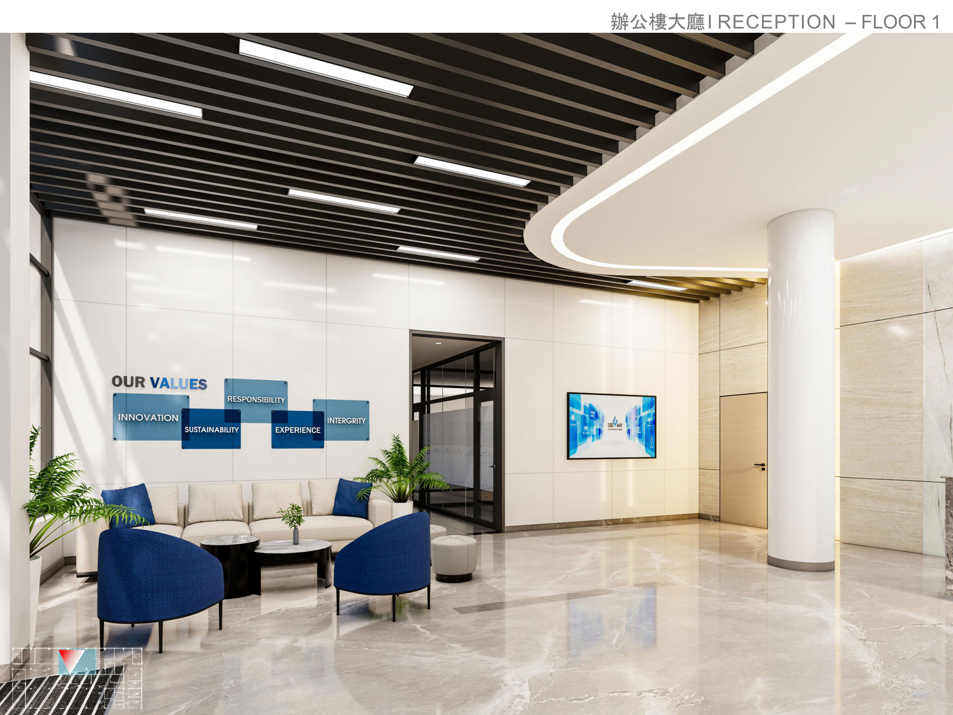 Mỗi khu vực trong nhà máy được bố trí hợp lý, từ khu tiếp đón, khu làm việc điều hành, đến khu trưng bày sản phẩm và phòng họp khách. Từng chi tiết nội thất được lựa chọn kỹ lưỡng, sử dụng vật liệu cao cấp kết hợp cùng thiết kế hiện đại nhằm tạo nên không gian vừa sang trọng, vừa thân thiện và truyền cảm hứng cho nhân sự.