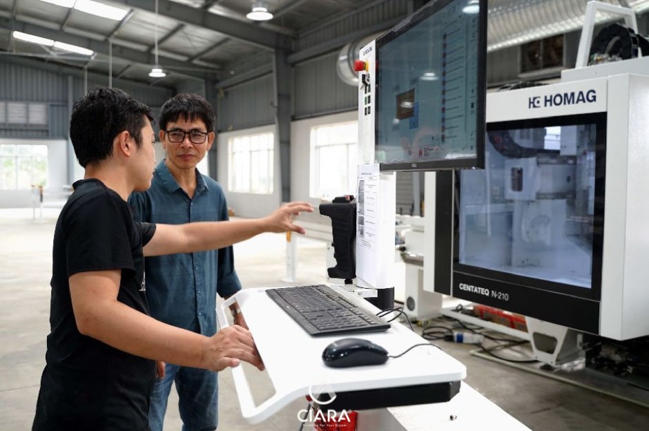 Sử dụng dây chuyền máy móc công nghệ 4.0 HOMAG của Đức, CIARA đảm bảo tất cả sản phẩm nội thất đáp ứng hệ thống tiêu chuẩn chất lượng cao, tiên phong công nghệ và dẫn đầu xu hướng. Các kiến trúc sư và nhà thiết kế của CIARA luôn cố gắng đem đến cho khách hàng những xu hướng nội thất hiện đại, tiện ích và các thiết kế độc đáo, ấn tượng theo cá tính của gia chủ.